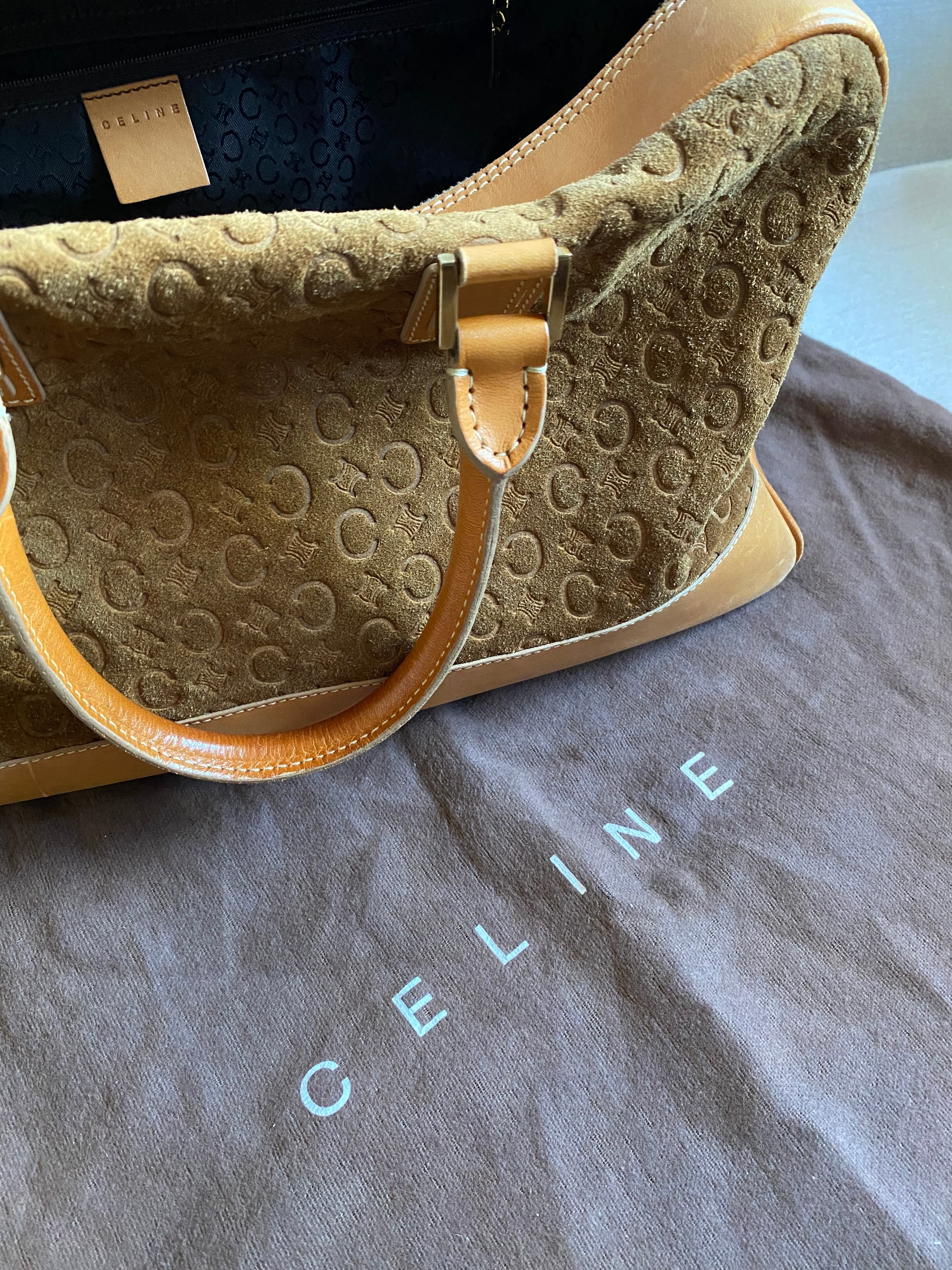 CELINE オールドセリーヌ Cマカダム レザー×スウェード ボストンバッグ【CM00019】