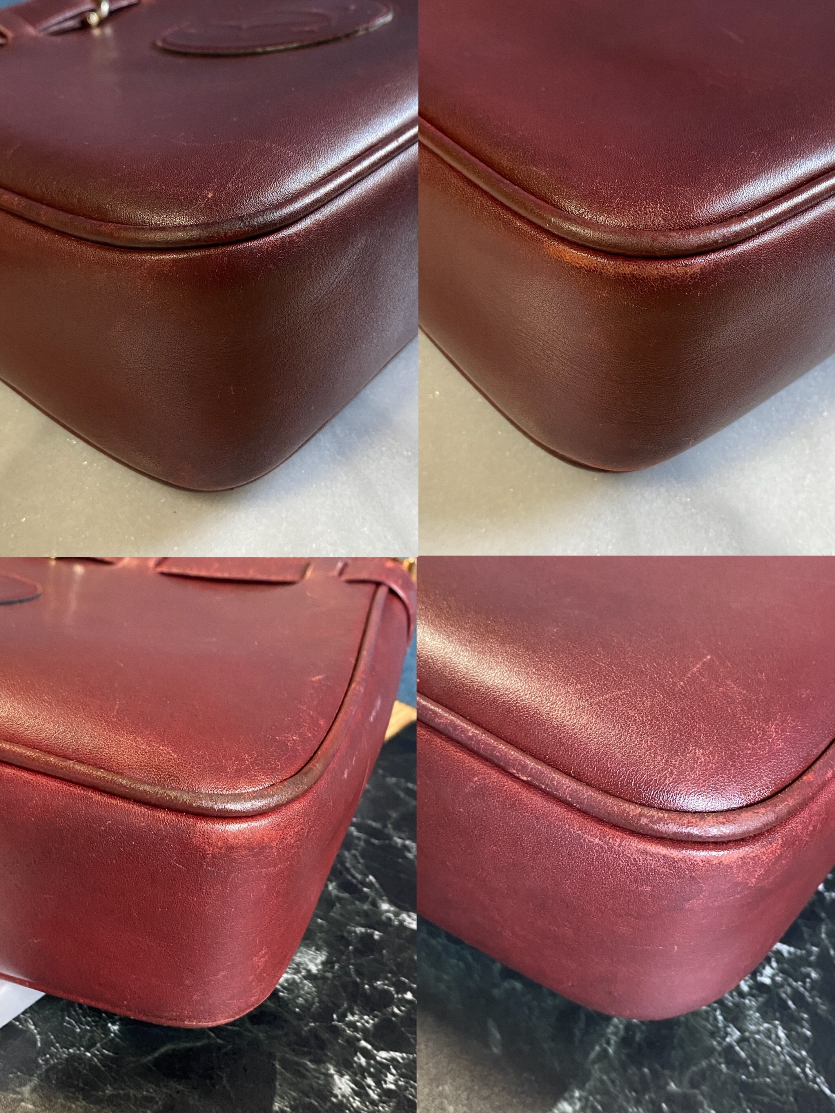 角擦れ、使用感がございます。ショルダーに長さ調節のためと思われる穴あきあり。ヴィンテージ品の傷などはございますが大きなダメージなどなく全体的に綺麗な状態で問題なく使用頂けます。