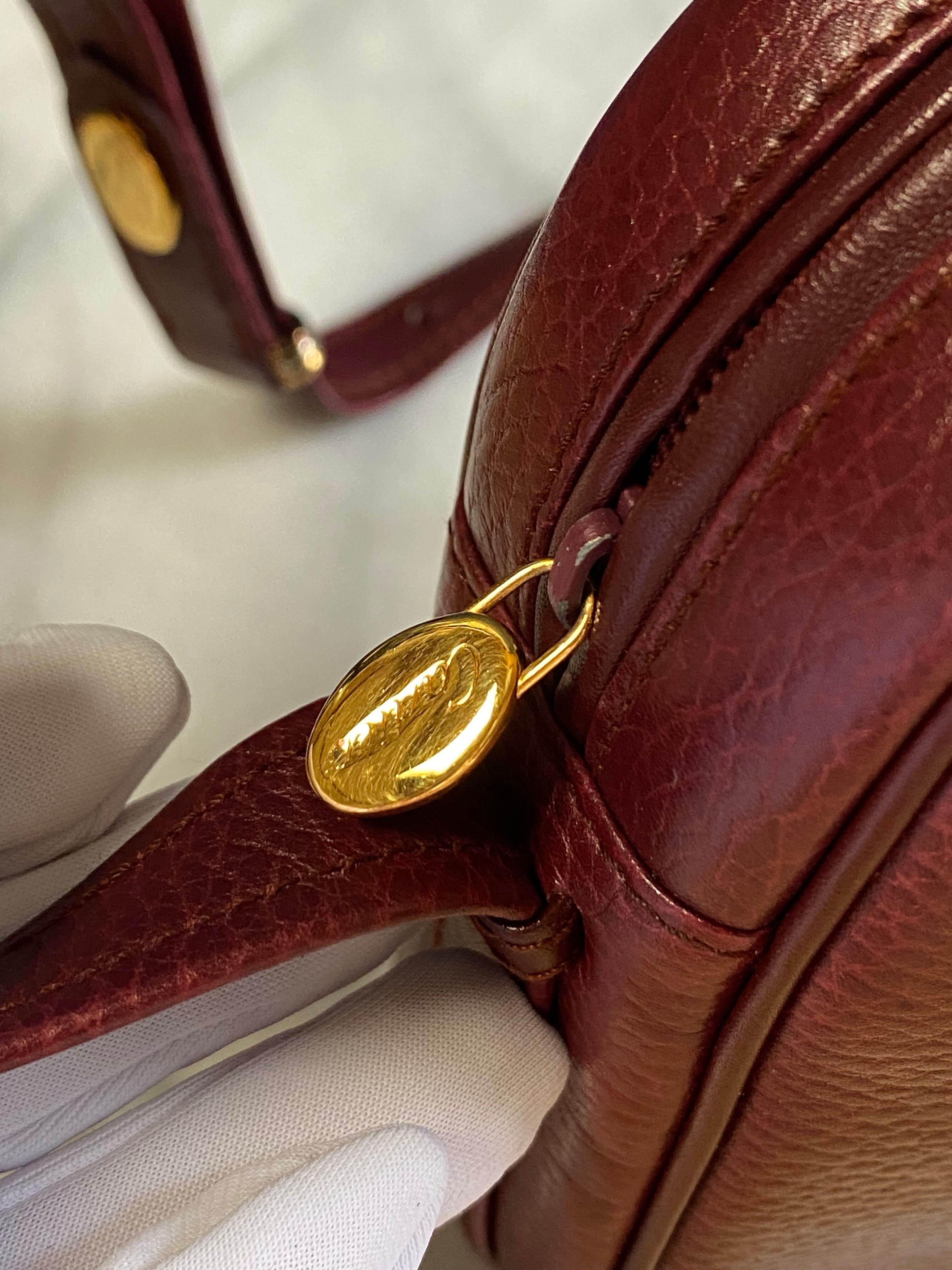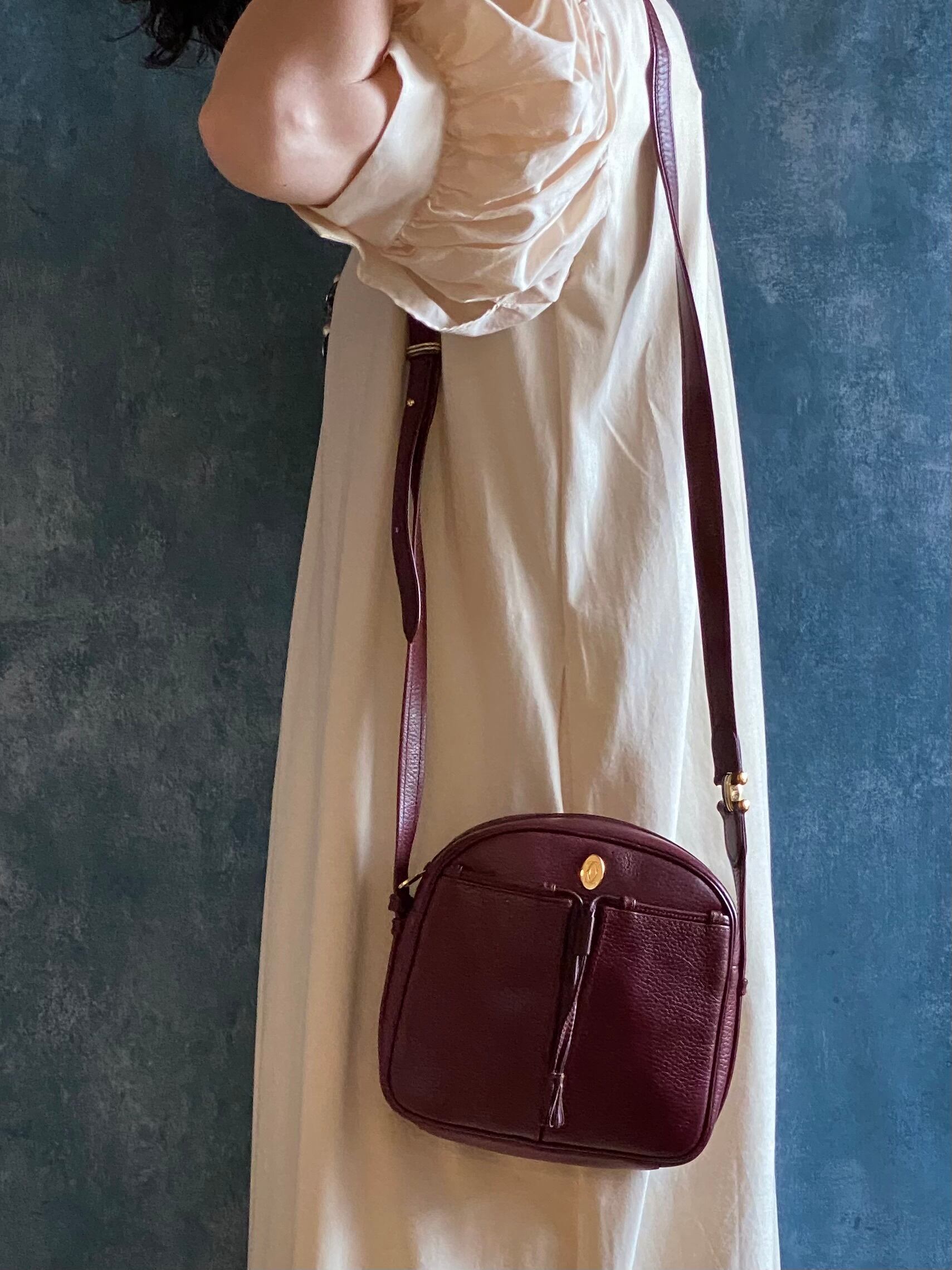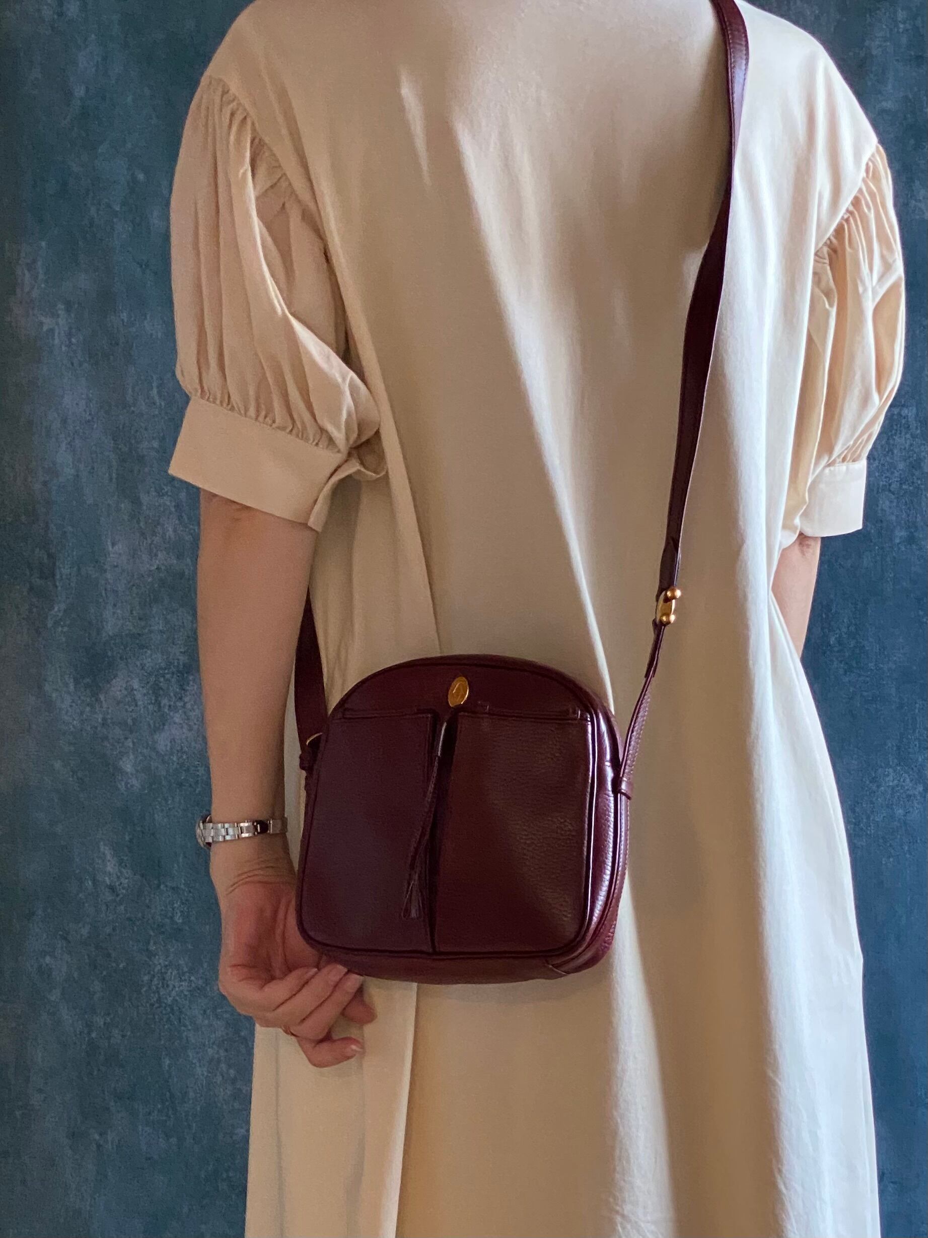 リッチな気分を味わえるカルティエのショルダーバッグ。マストラインのトリニティ金具が高級感を演出し、ボルドーのレザーがエレガントな雰囲気を醸し出します。斜めがけできるので、外出時にも手軽にお使いいただけます。 また、カルティエならではの職人技が光る仕上げは、見る者を魅了すること間違いなし。上質なカーフレザーは使い込むほどに味が出てきて、経年変化も楽しめます。 特別な場に持ち出したくなる、永く愛用できる一品です。