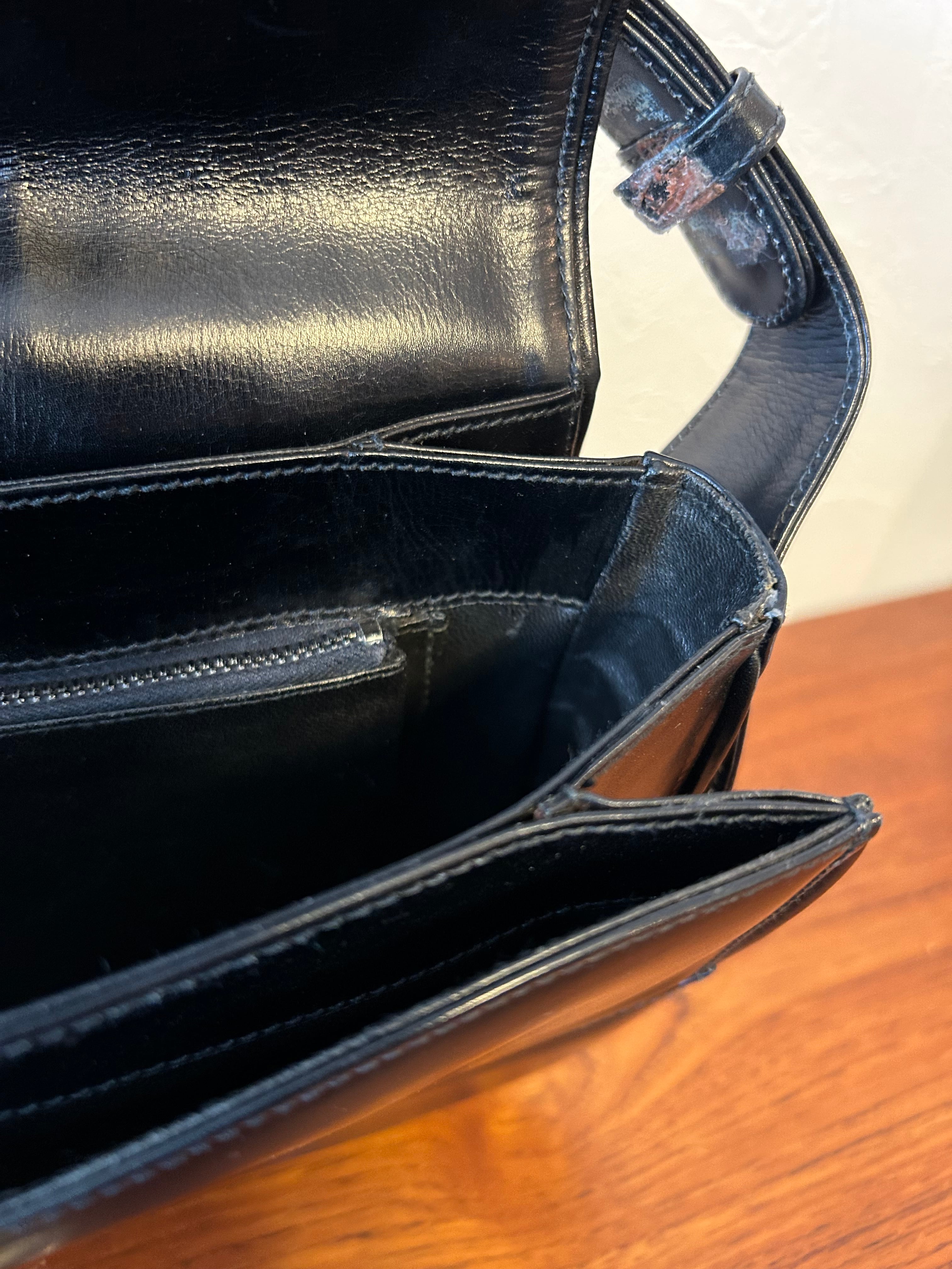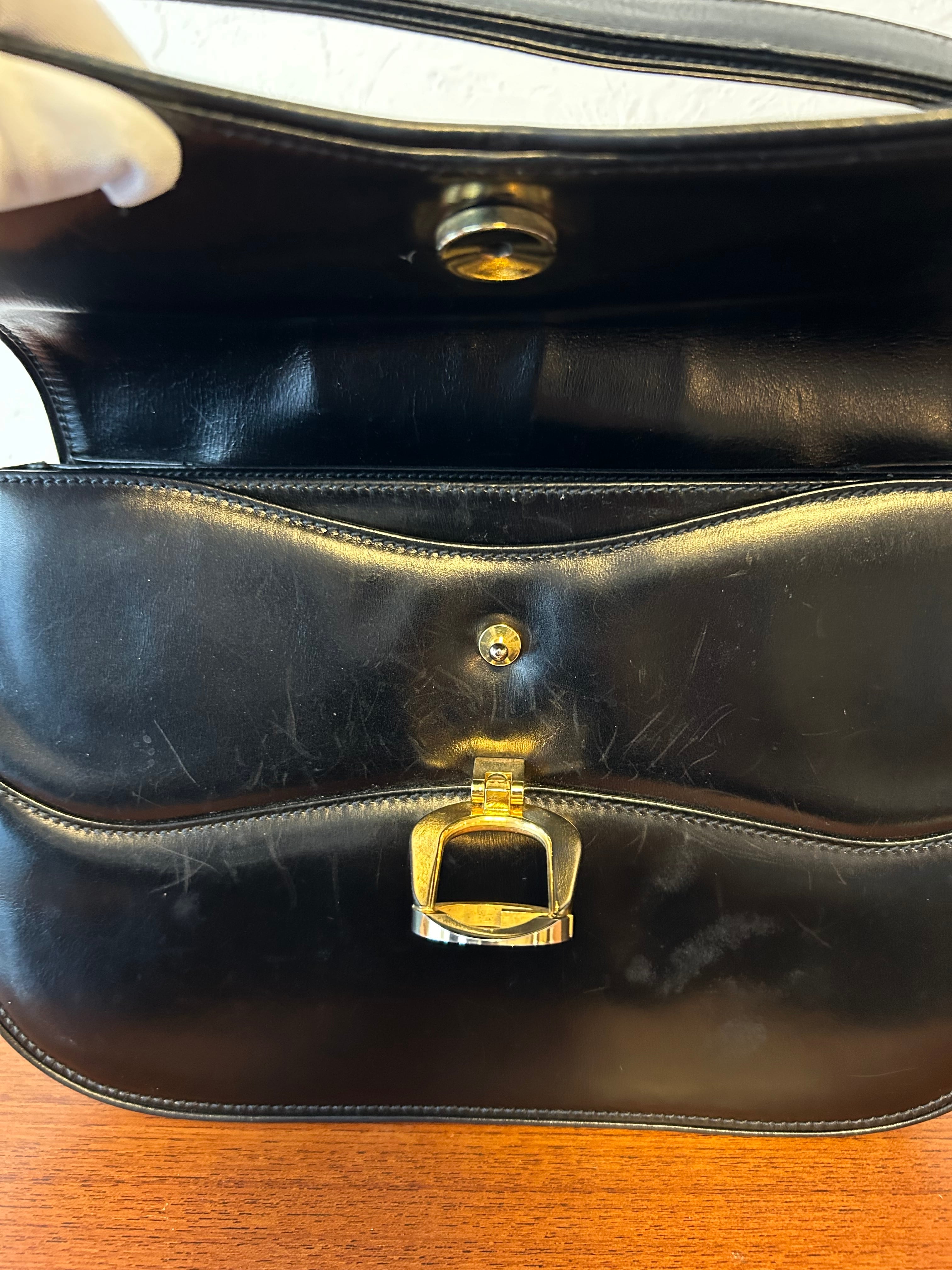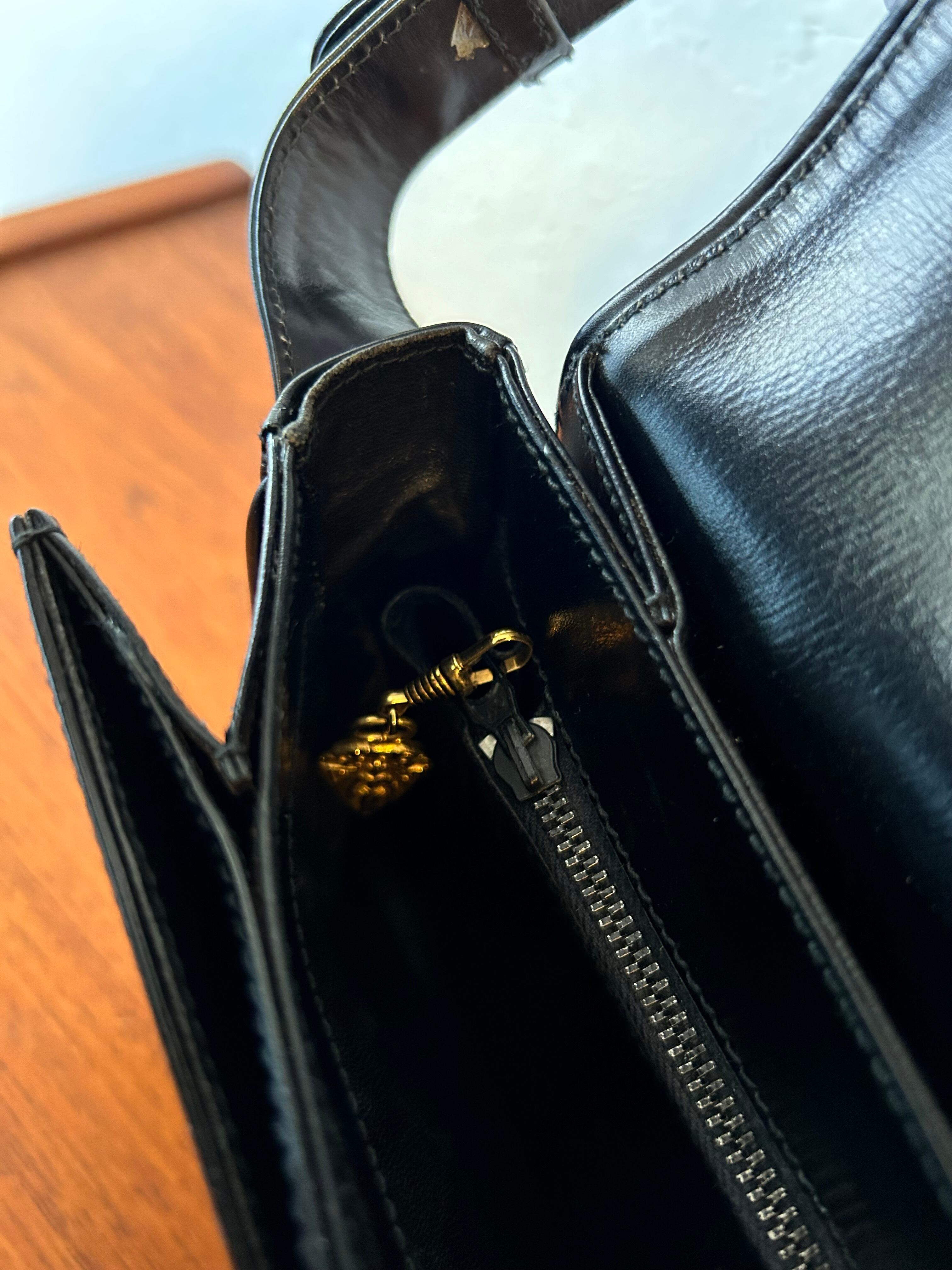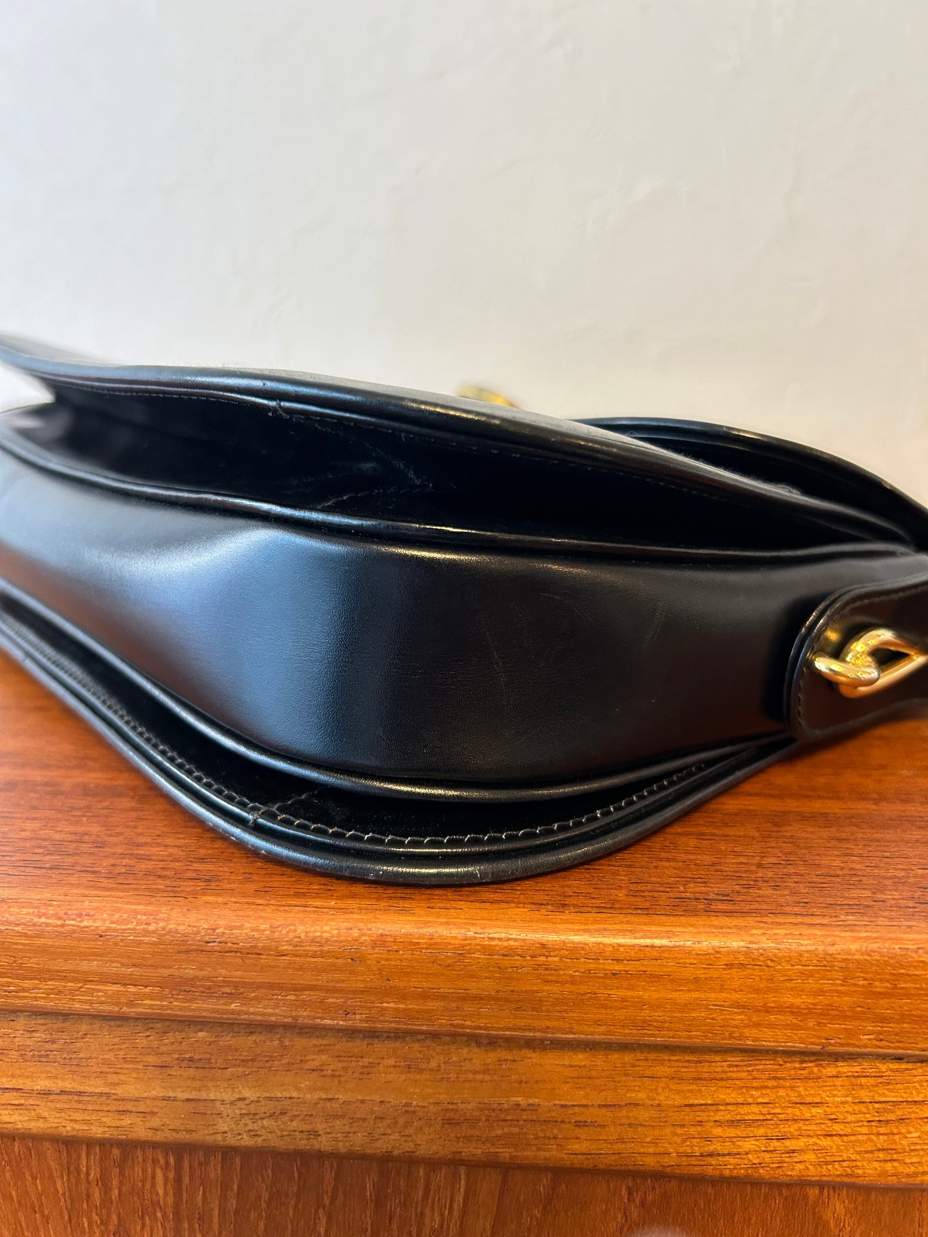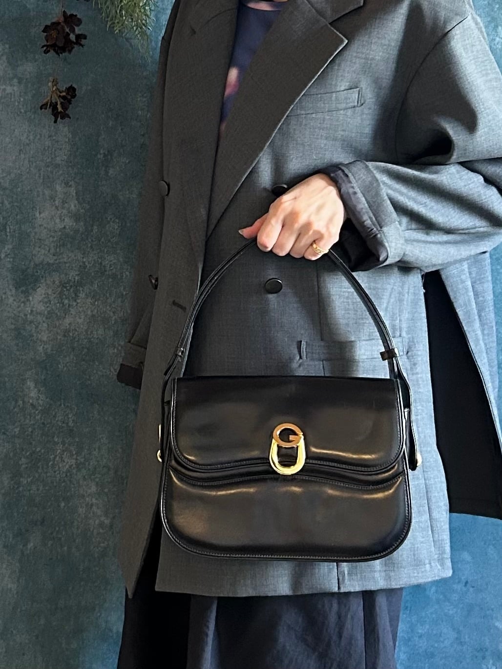 シックでクラシカルな印象を演出するオールドGUCCIのショルダーバッグ。高級感漂うG金具がアクセントとなり、上品なレザーの質感とネイビーカラーが相まって、どんなコーディネートにもマッチします。大人の女性にふさわしいデザインでありながら、使い勝手の良さも兼ね備えています。長く愛用したい一品で、洗練されたスタイルを演出します。