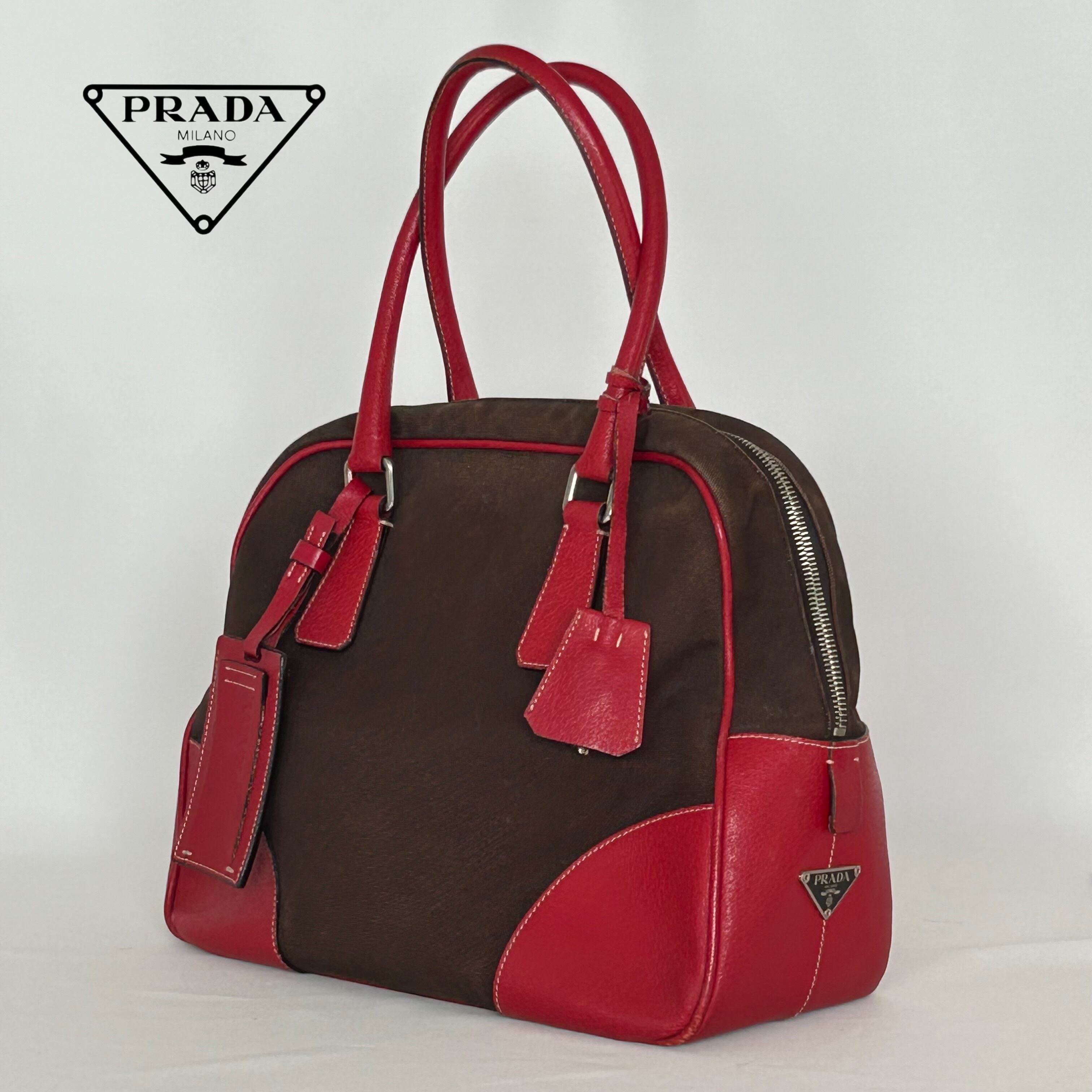 絶妙なサイズのキャンバスレザーハンドバッグが登場しました。プラダの赤は、大人の魅力を引き立てるアイテムです。PRADAの中でもボストンは人気となっています。