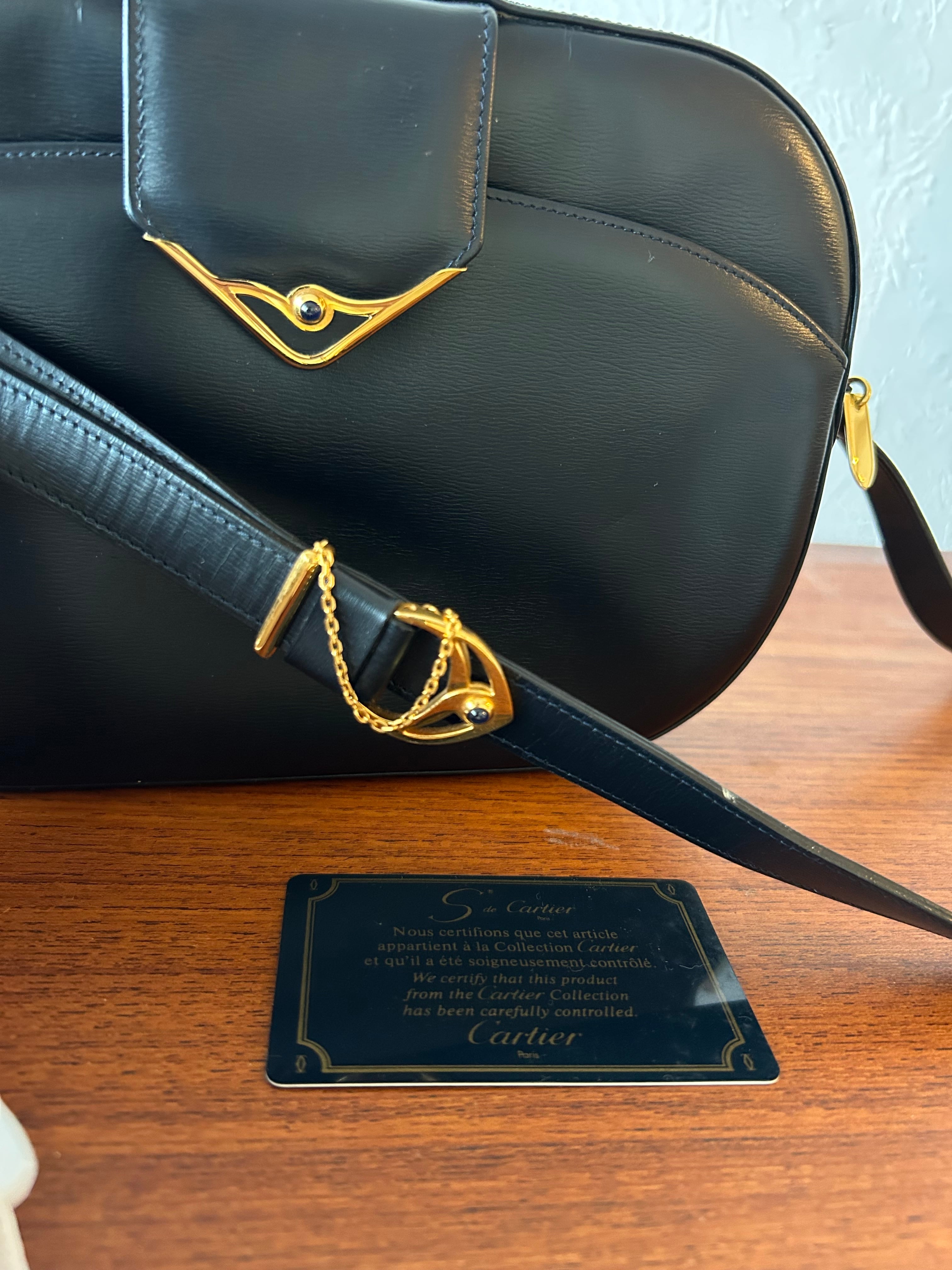 Cartier ヴィンテージカルティエ サファイアライン レザーショルダーバッグ【CM00059】