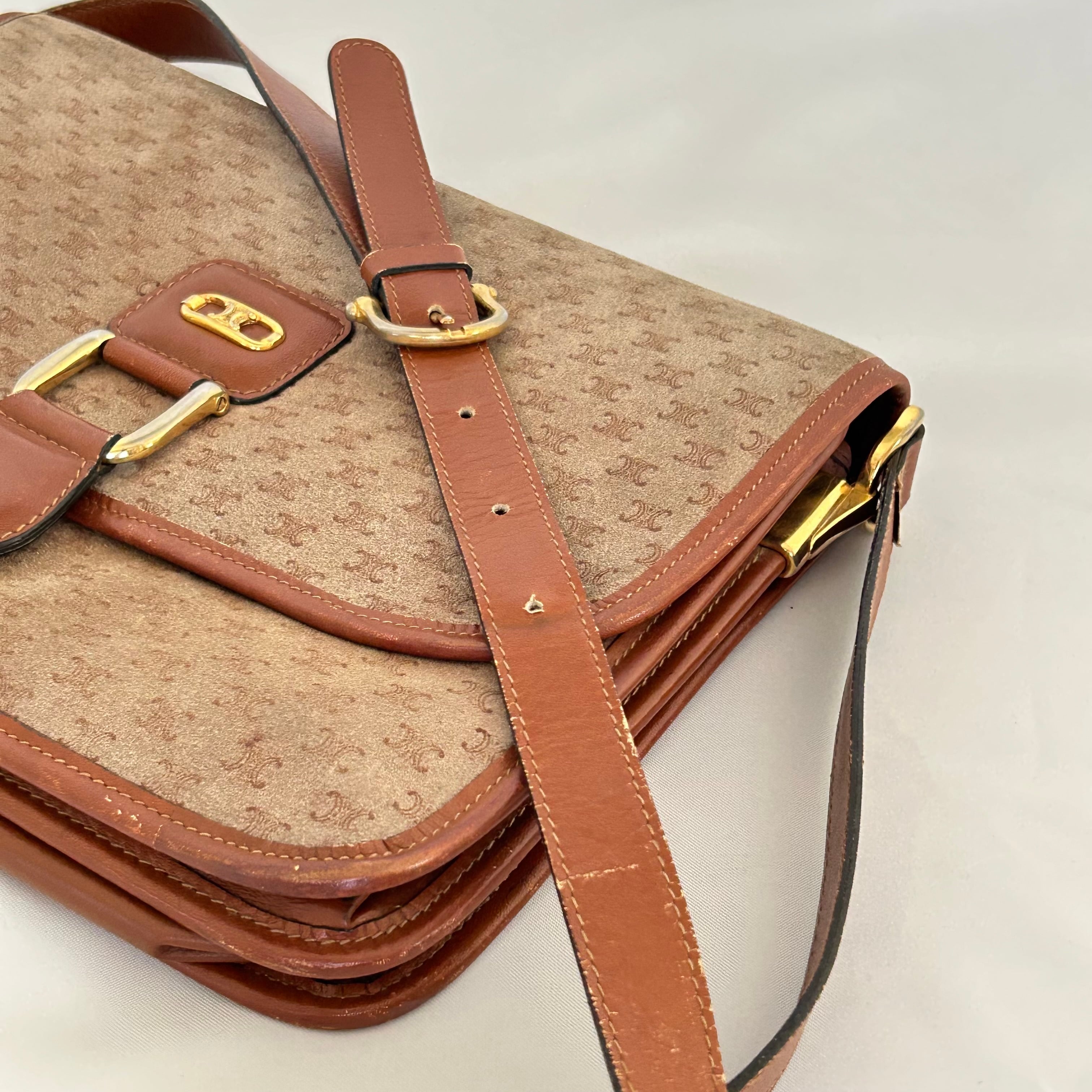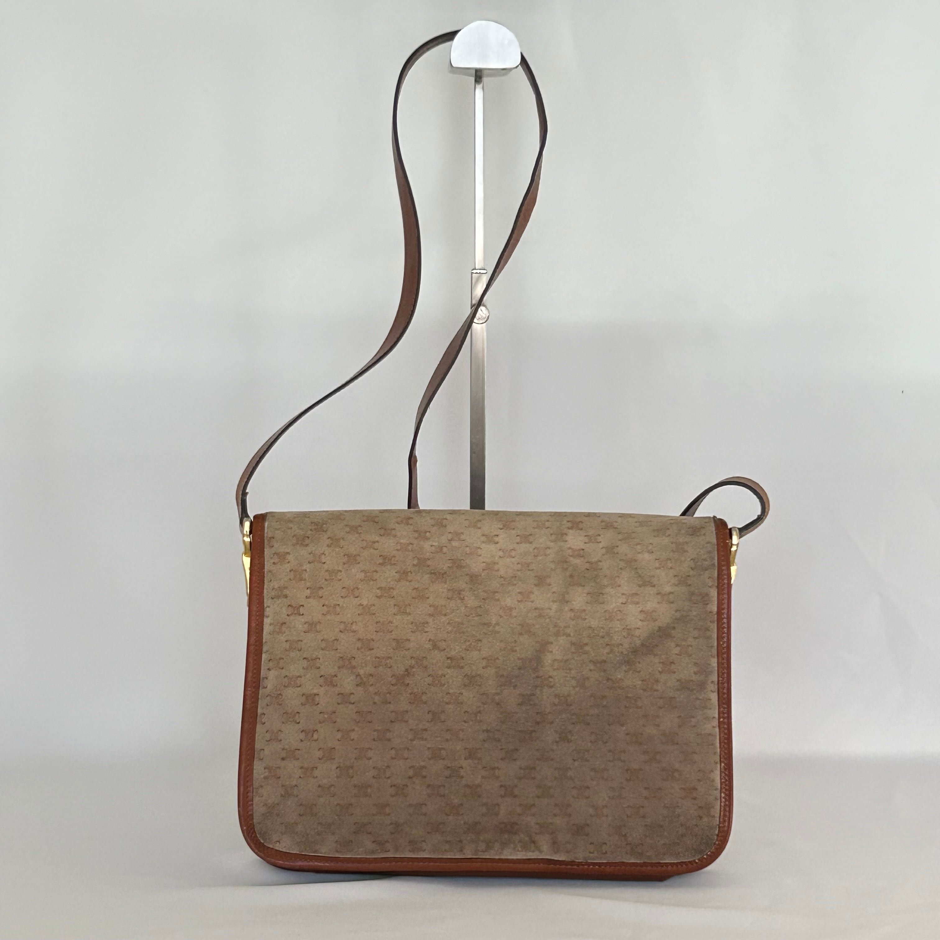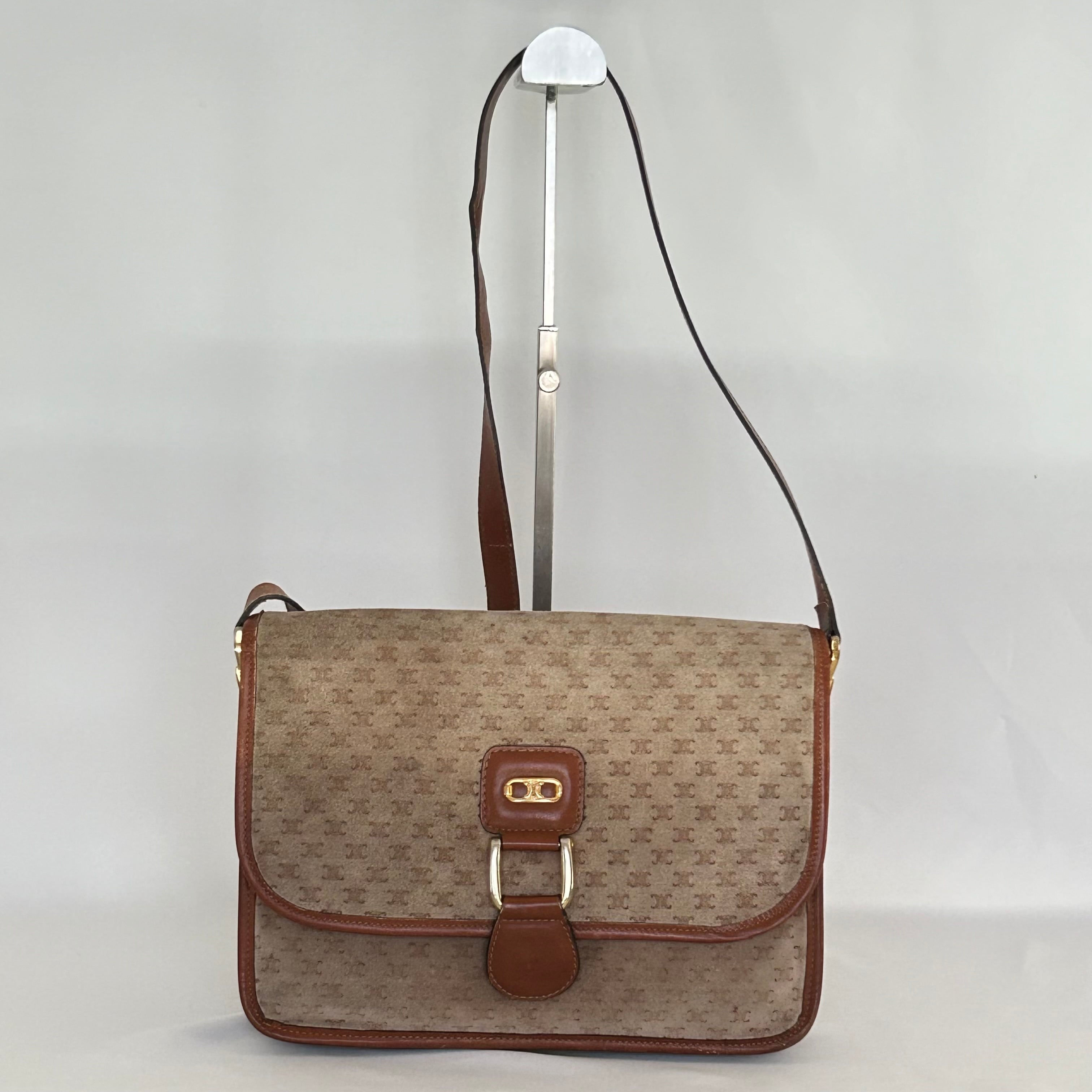 CELINE オールドセリーヌ マカダム レザー×スウェード ショルダーバッグ【CM00051】