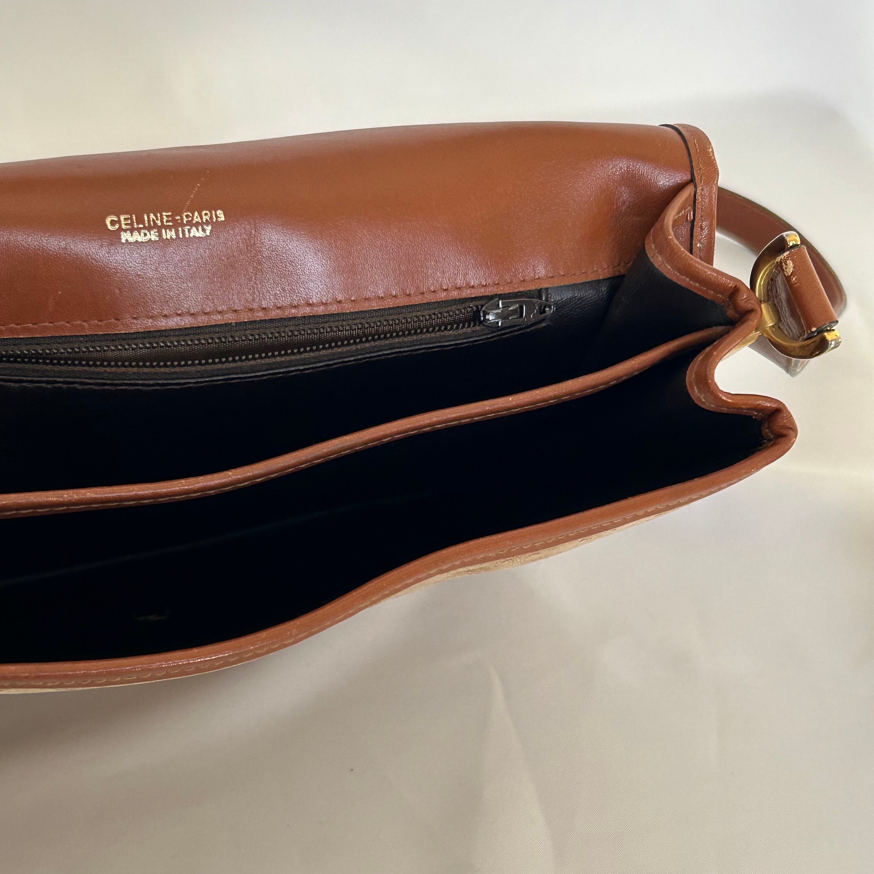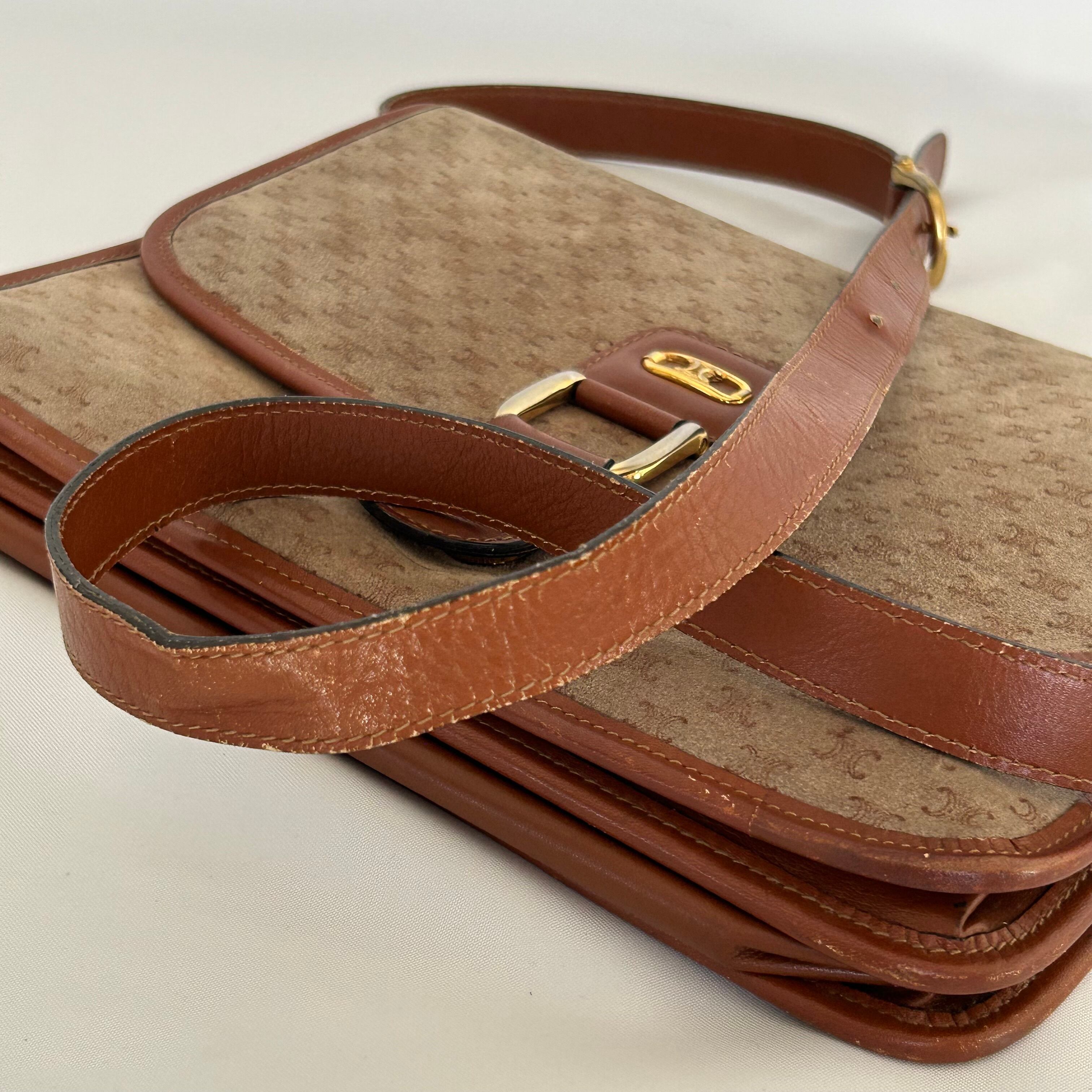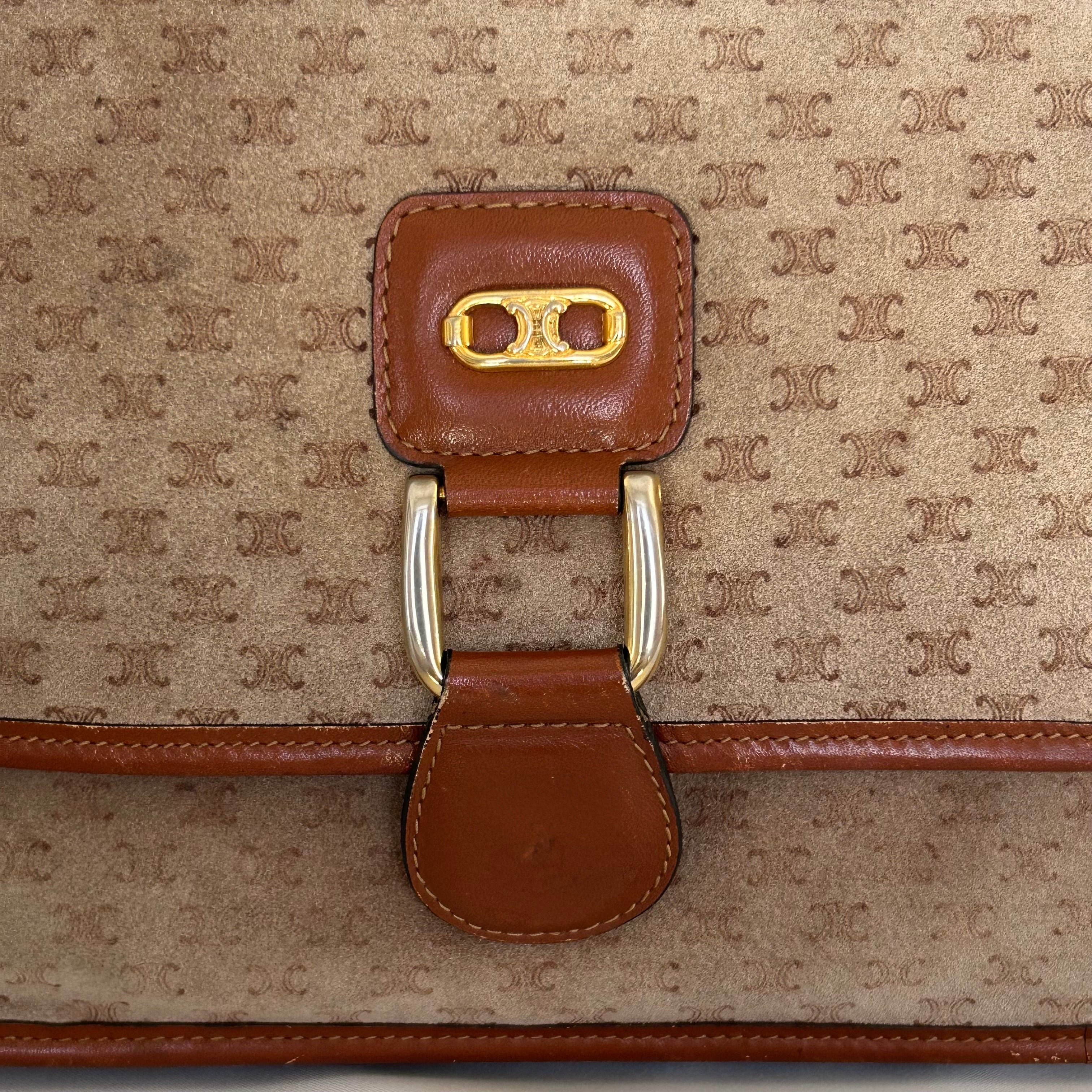 CELINE オールドセリーヌ マカダム レザー×スウェード ショルダーバッグ【CM00051】