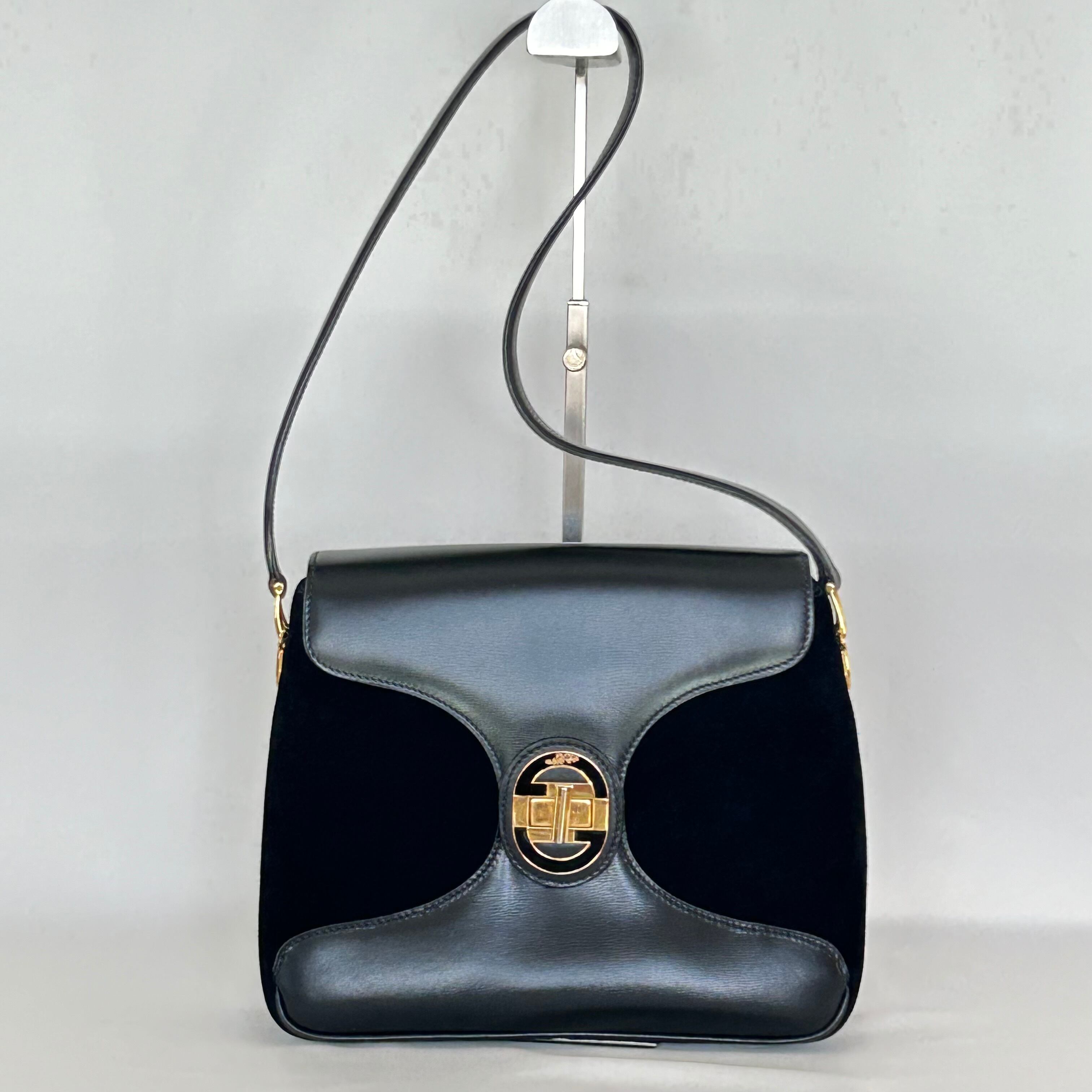 OLD GUCCI スウェード×レザー ターンロック ショルダーバッグ 【CM00076】