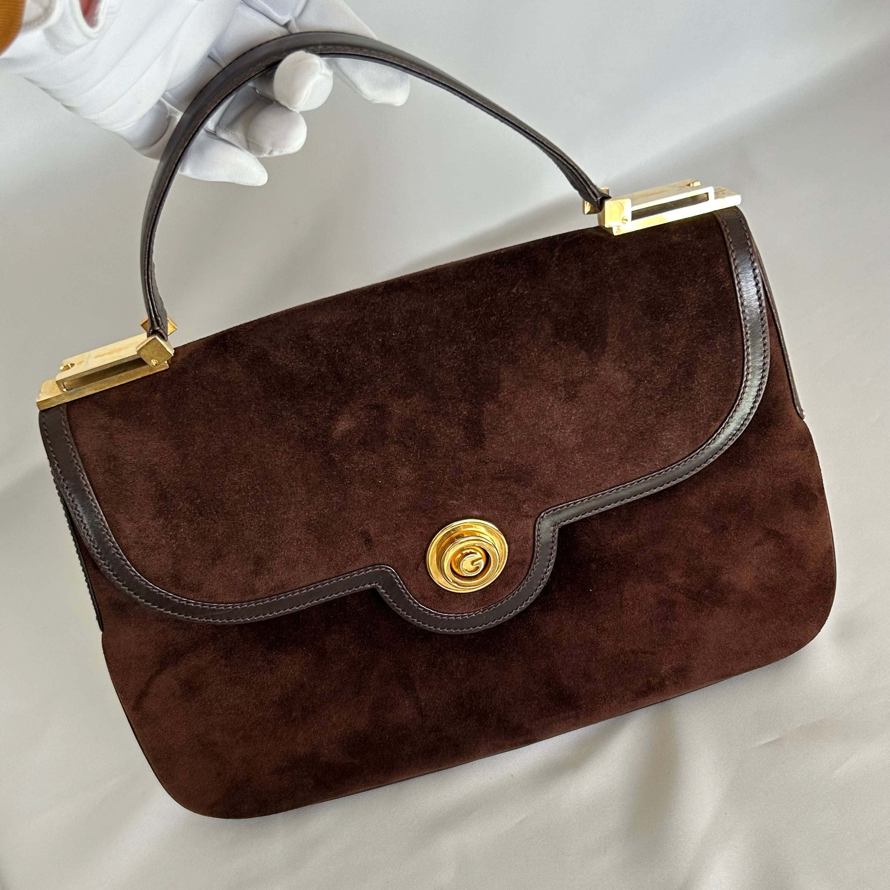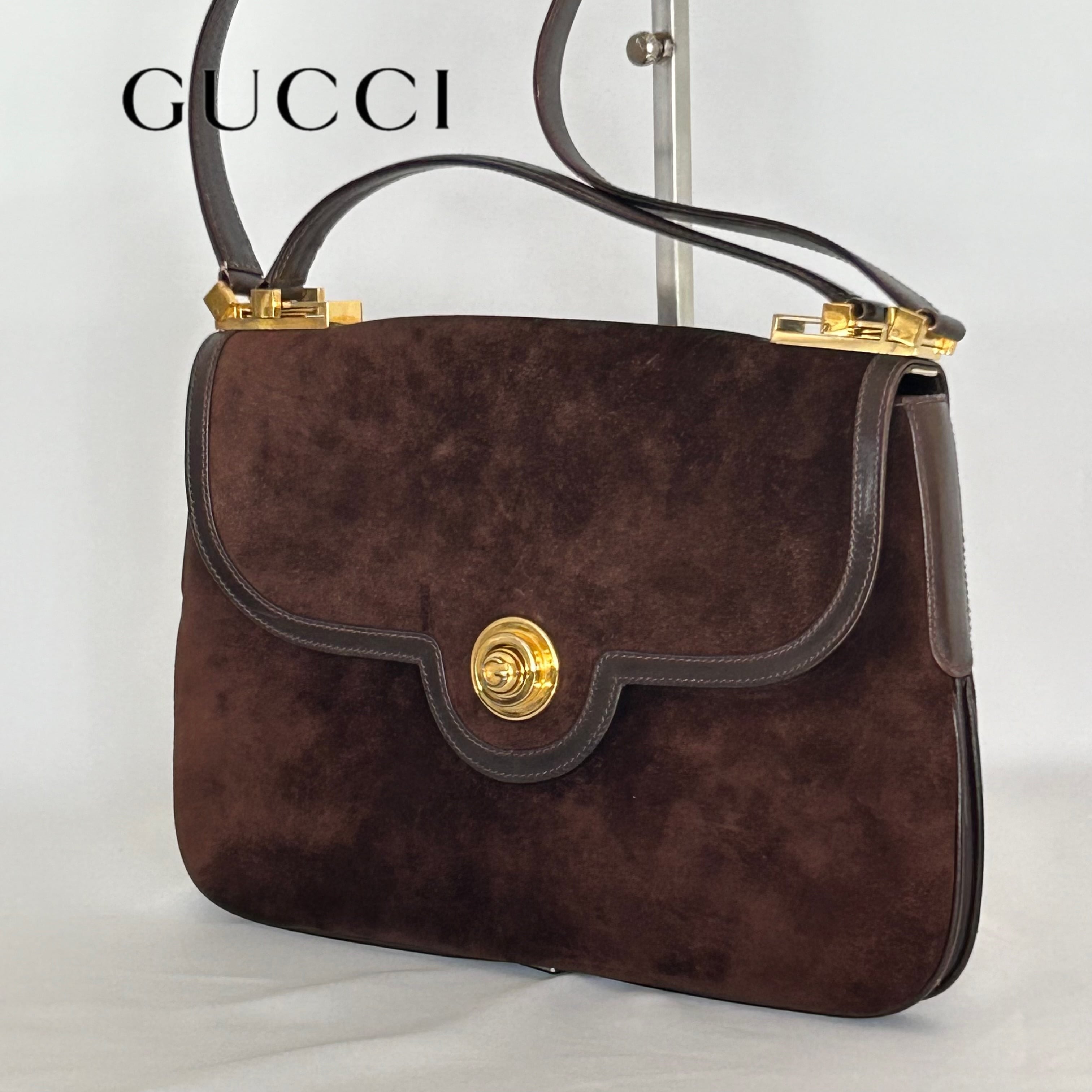 【希少】OLD GUCCI スウェード×レザー プッシュロック ショルダーバッグ 【CM00078】